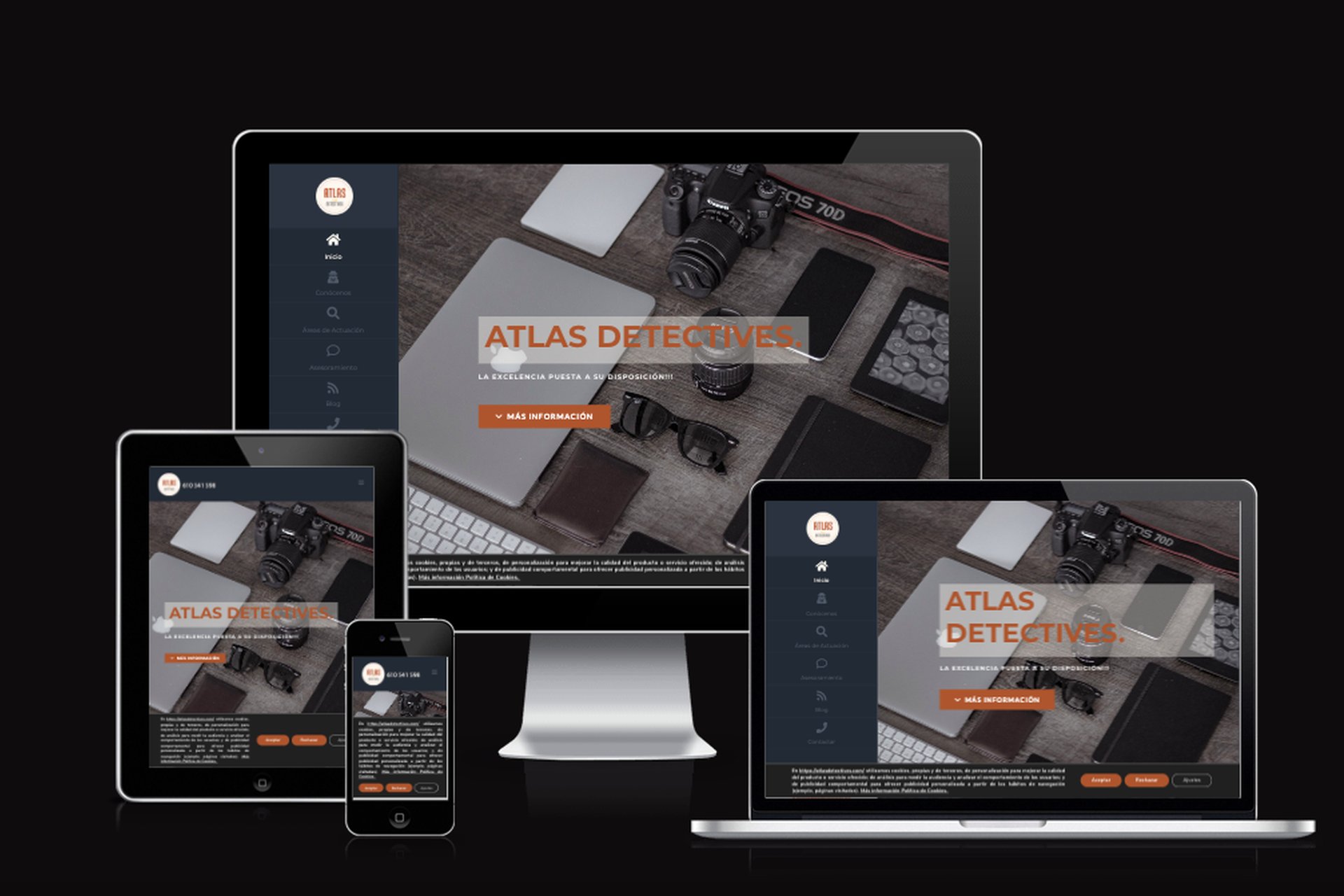 Creación y mantenimiento de la web corporativa de la agencia ATLAS DETECTIVES, despacho de investigación privada con sede en la ciudad de Valencia.