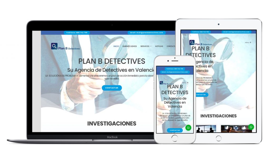 Prácticas en la empresa Enervía Soluciones Energéticas, tras el registro del dominio y su alojamiento, se ha creado la web corporativa para la Agencia de Detectives Privados Plan B Detectives.